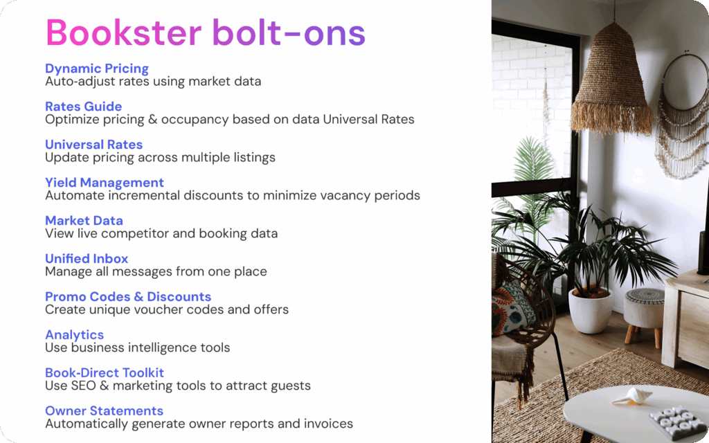 Bookster is committed to helping hosts be seen and get booked. It has a lot to offer for property managers who view direct as the main channel to drive rentals.