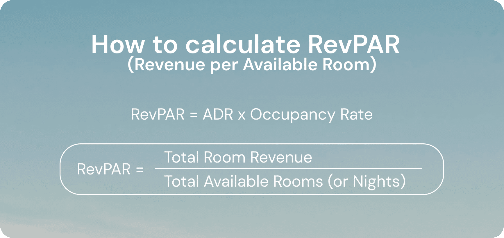 There are two ways to calculate the revenue per available room. One is based on ADR and occupancy, and another divides the total revenue by the number of available rooms or nights. You can use whichever is more convenient for you.