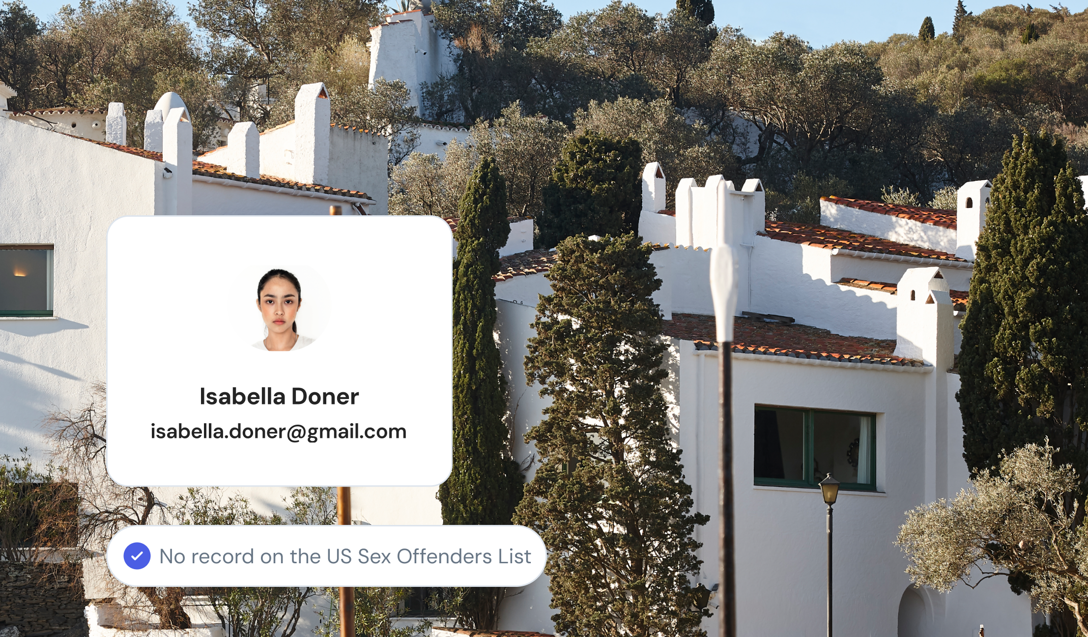 Add extra layers of protection to your guest screening. Choose ID verification, criminal background checks, or sex offender screening—or combine them all—based on each property’s needs.