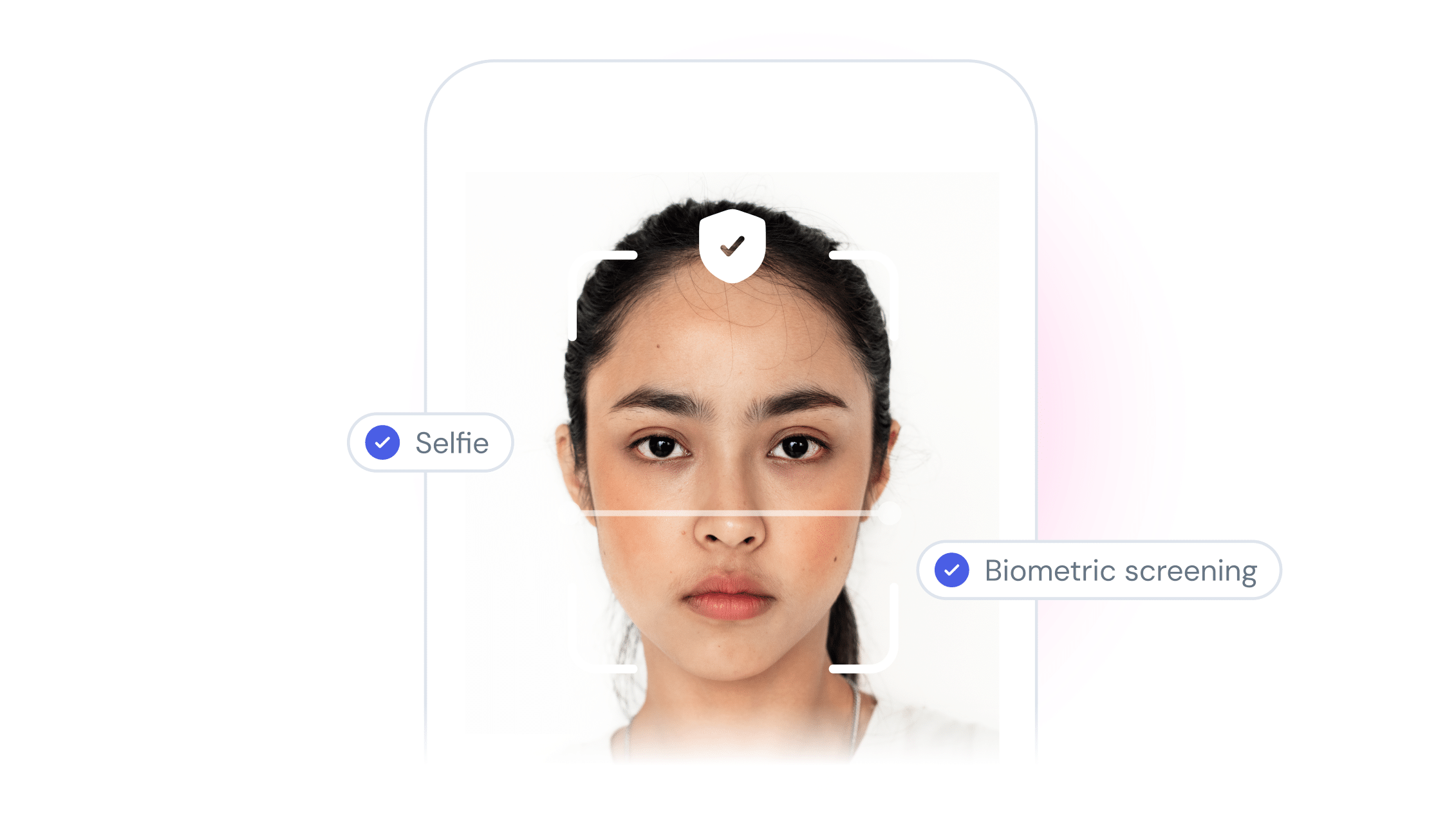 Our facial recognition technology compares the biometric data on the photo ID with the uploaded selfie in real time.