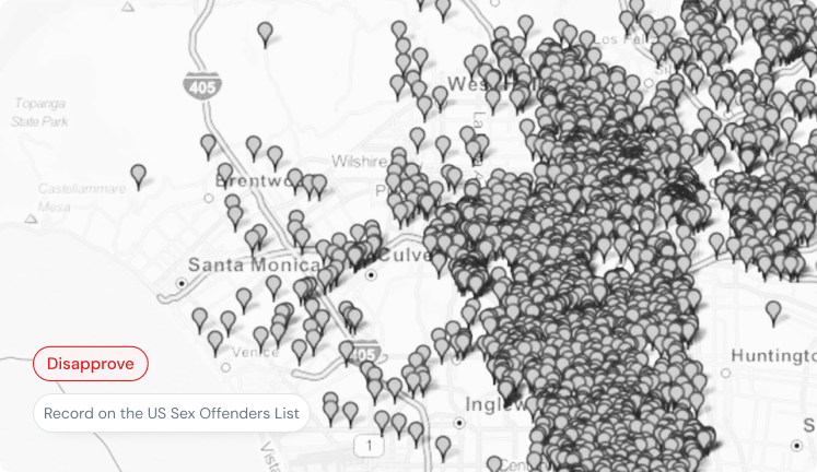 We automatically check the information against the US National Sex Offender Registry in real time.